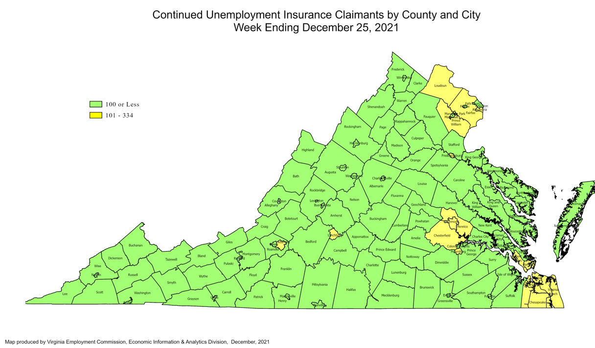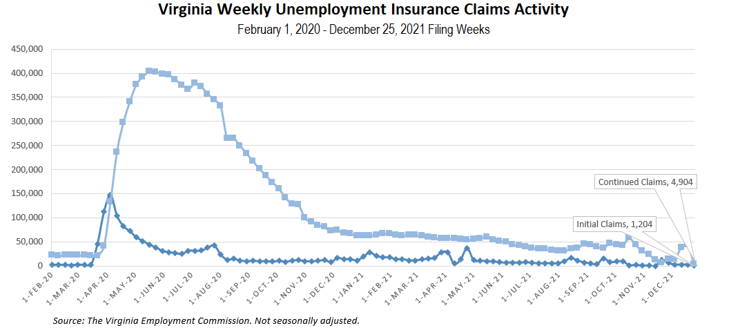 Virginia’s Unemployment Insurance Weekly Claims for Week Ending December 25th