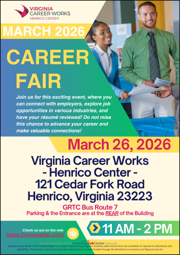 Virginia Career Works – Henrico Center’s March 2026 Career Fair