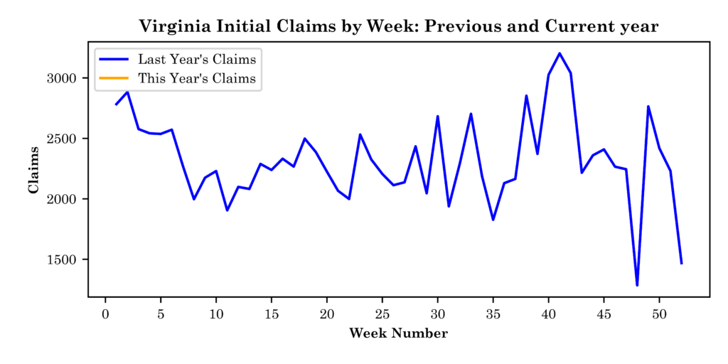 RICHMOND— Virginia Works announced today that 2,314 unemployment insurance weekly initial claims were filed during the week ending January 04, 2025, which is 57.6 percent higher than last week’s 1,468 claims and 16.8 percent lower than the comparable week of last year (2,782). Nearly 81 percent of claimants self-reported an associated industry; of those reported, the top five industries (58 percent) were Administrative and Support and Waste Management (224); Construction (217); Accommodation and Food Services (207); Manufacturing (192); and Professional, Scientific, and Technical Services (188).