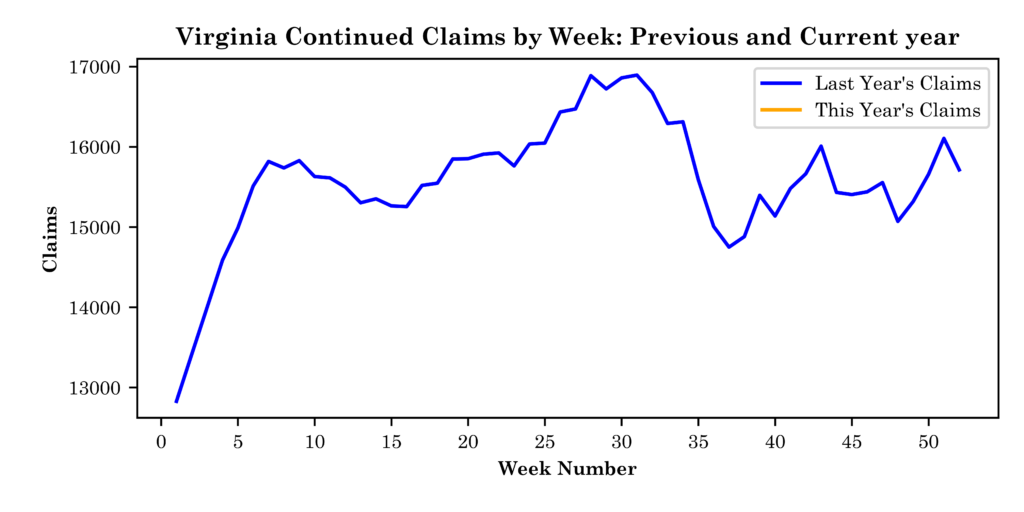 The color-coded map below shows the distribution of this week’s continued claims for Virginia’s counties and cities.