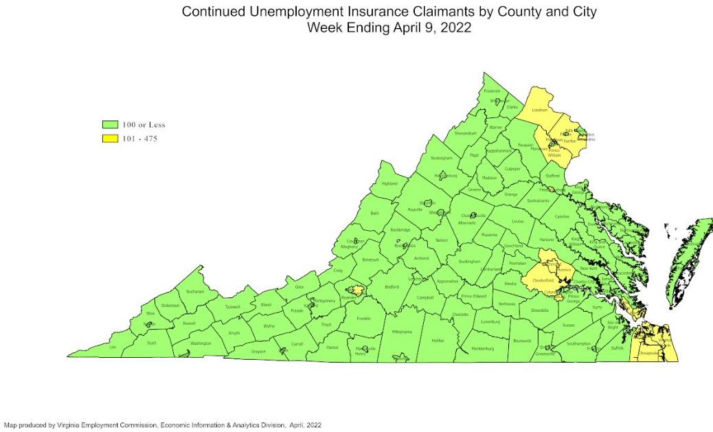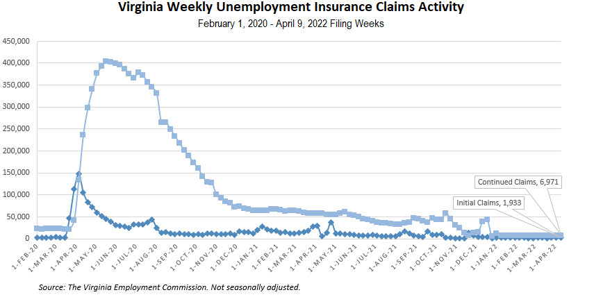 RICHMOND—The Virginia Employment Commission (VEC) announced today initial weekly claims of 1,933, and number of continued claims was 6,971. The continued weeks claims are higher than the previous week but remain at pre-pandemic levels during the most recent filing week.