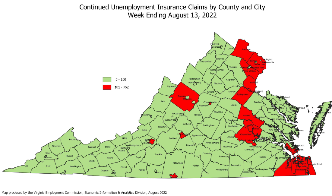 RICHMOND—The Virginia Employment Commission (VEC) announced that the number of continued claims were essentially unchanged, holding at their highest level since the end of 2021 during the most recent filing week.