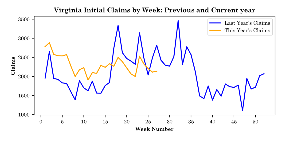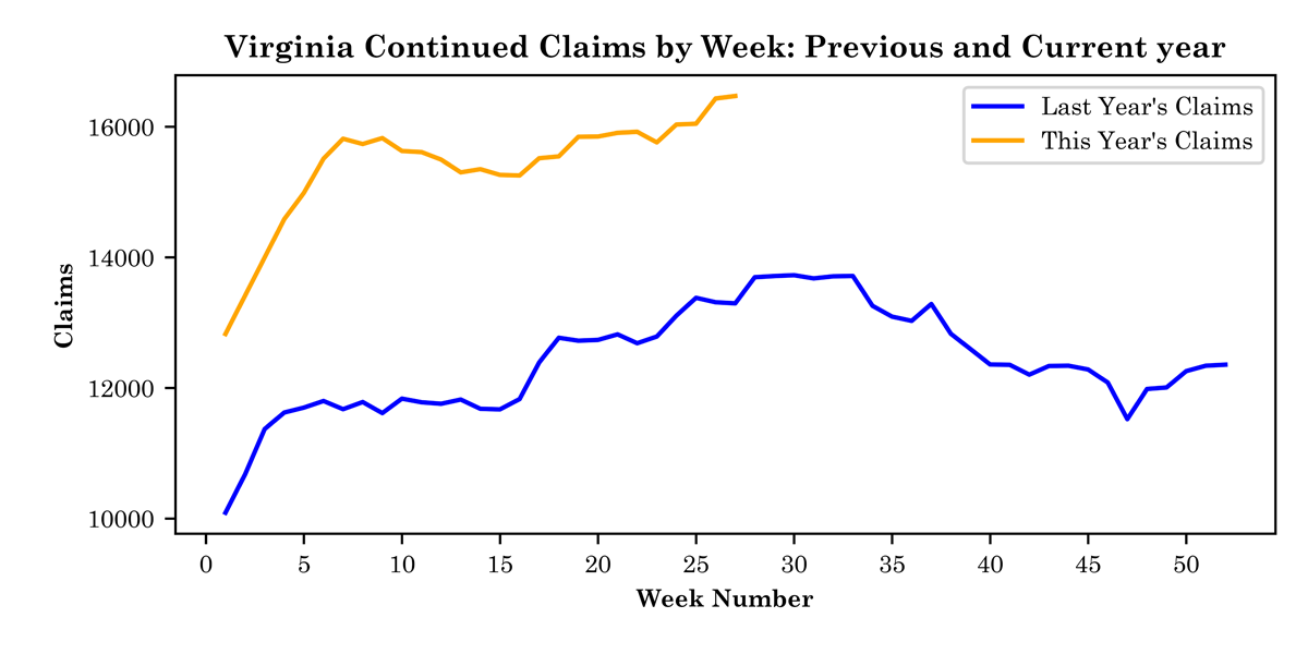 Virginia’s Latest Unemployment Insurance Weekly Initial Claims at 2,136; Continued Claims at 16,471