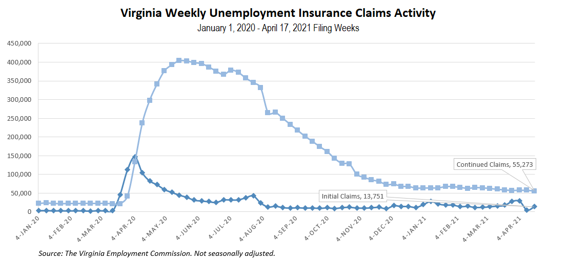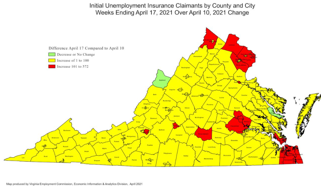 Virginia’s Unemployment Insurance Weekly Claims for Week Ending April 17th
