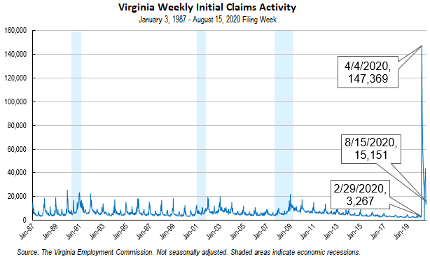Virginia’s Unemployment Insurance Weekly Claims for Week Ending August 15th