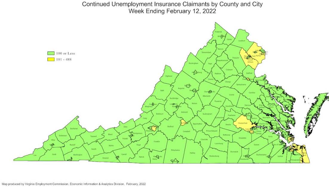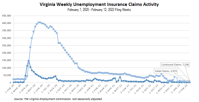 RICHMOND—The Virginia Employment Commission (VEC) announced that the number of continued claims was little changed, remaining at pre-pandemic levels during the most recent filing week.