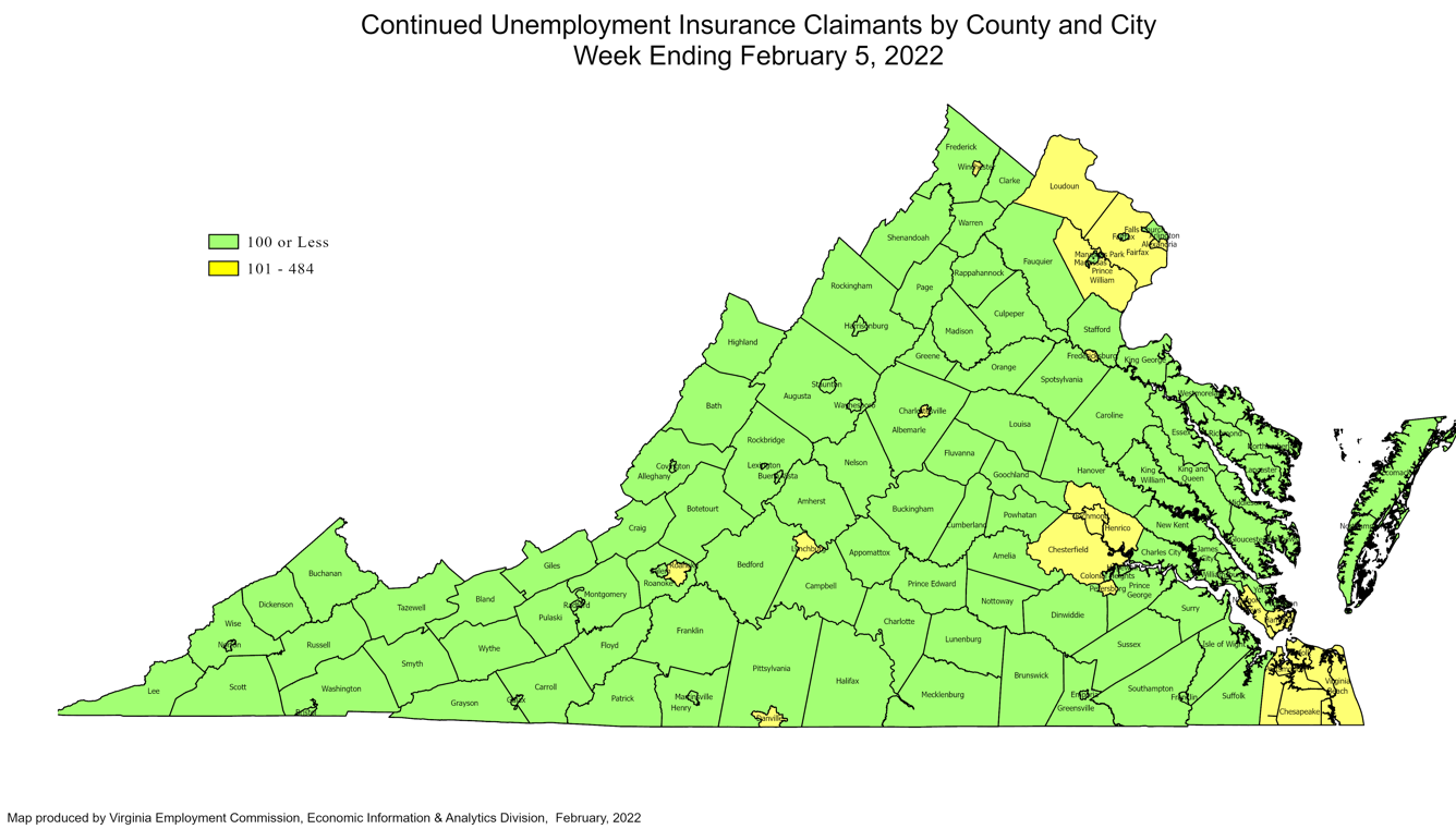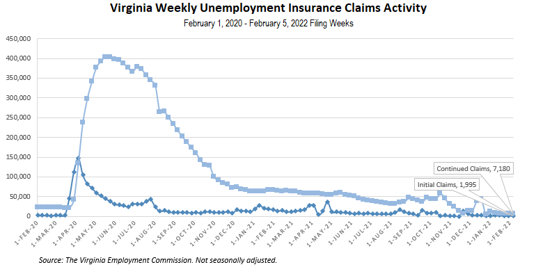RICHMOND—The Virginia Employment Commission (VEC) announced that the number of continued claims was little changed, remaining at pre-pandemic levels during the most recent filing week.