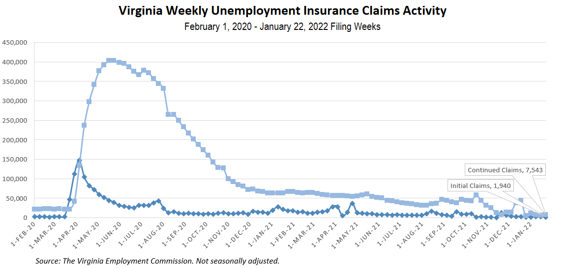 RICHMOND—The Virginia Employment Commission (VEC) announced that the number of continued claims rose, remaining at pre-pandemic levels during the most recent filing week.