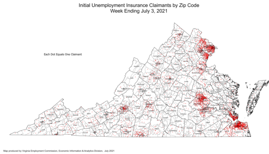 For additional information on who is claiming unemployment insurance in Virginia, access the VEC’s U.I. claims data dashboard (https://www.vec.virginia.gov/ui-claims-dashboard) that is updated no later than the following Monday after the weekly claims press release.