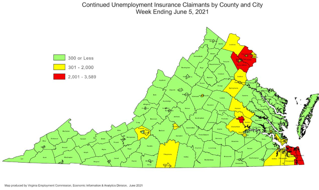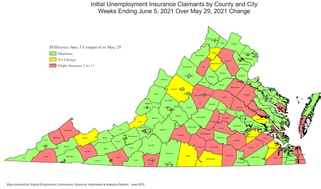 RICHMOND—The Virginia Employment Commission (VEC) announced that the number of initial claims filed during the most recent filing week continued the trend of recent weeks’ lower claims volumes.
