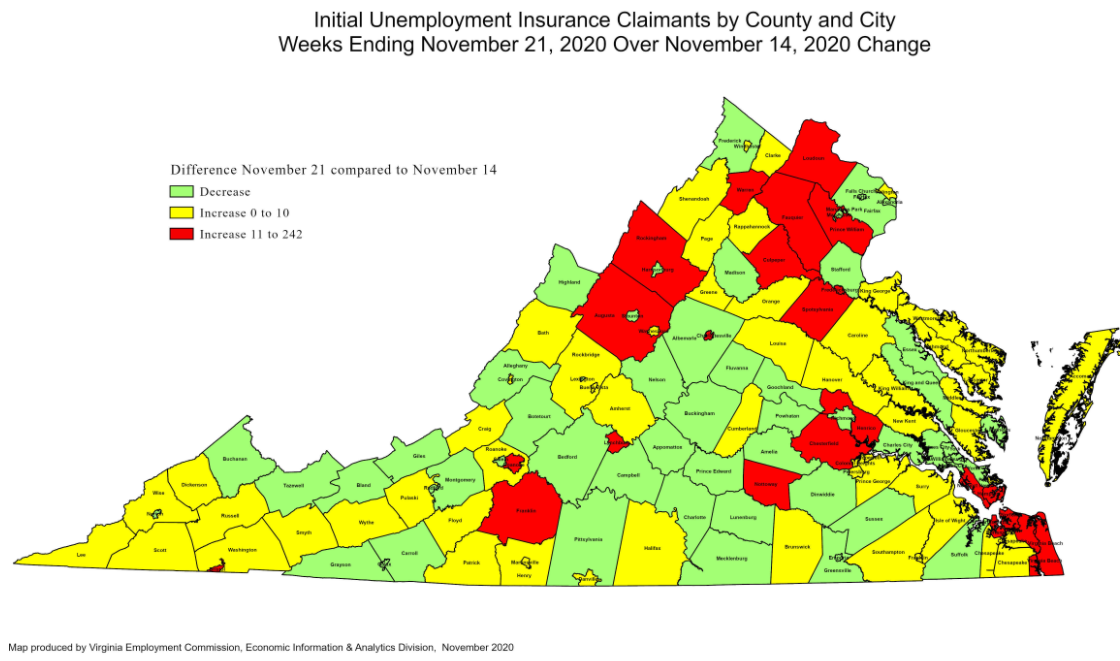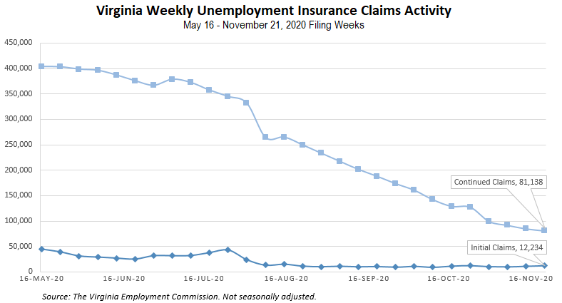 RICHMOND—The Virginia Employment Commission (VEC) announced that the number of initial claims filed during the November 21 filing week rose to the highest level in a month, according to figures released today.